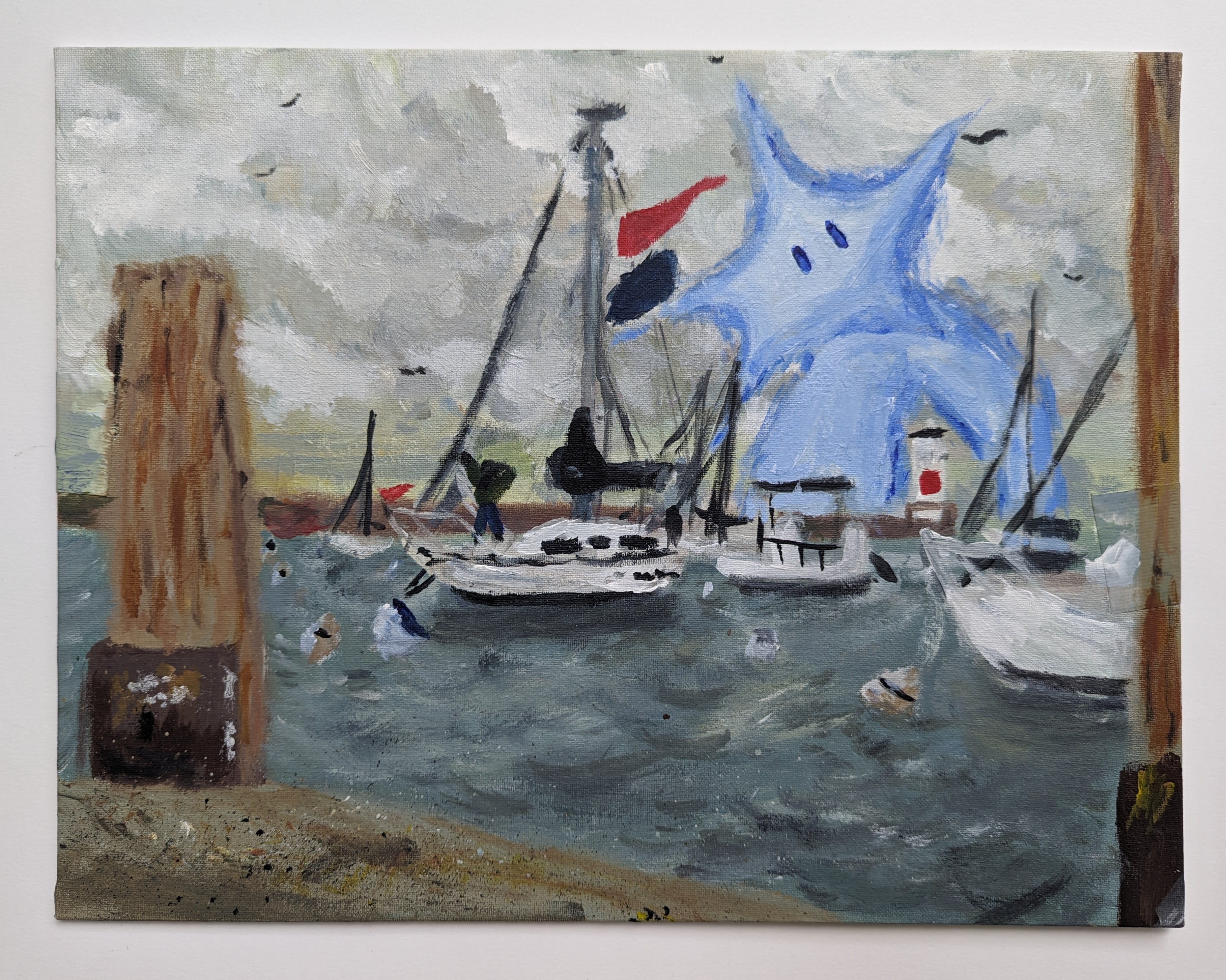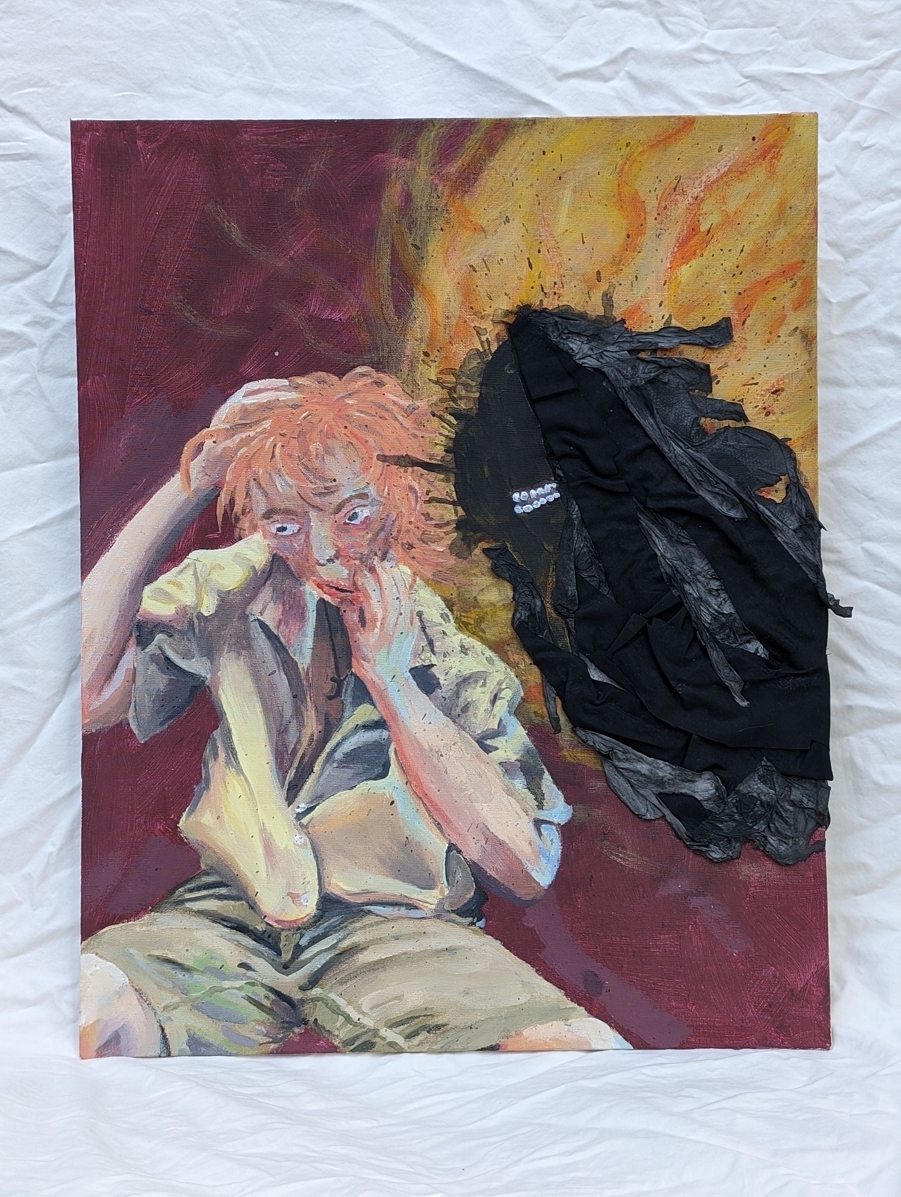 |   Chicago Docks, 2024, acrylic on canvas |   It's So Funny, 2023, multimedia on canvas |