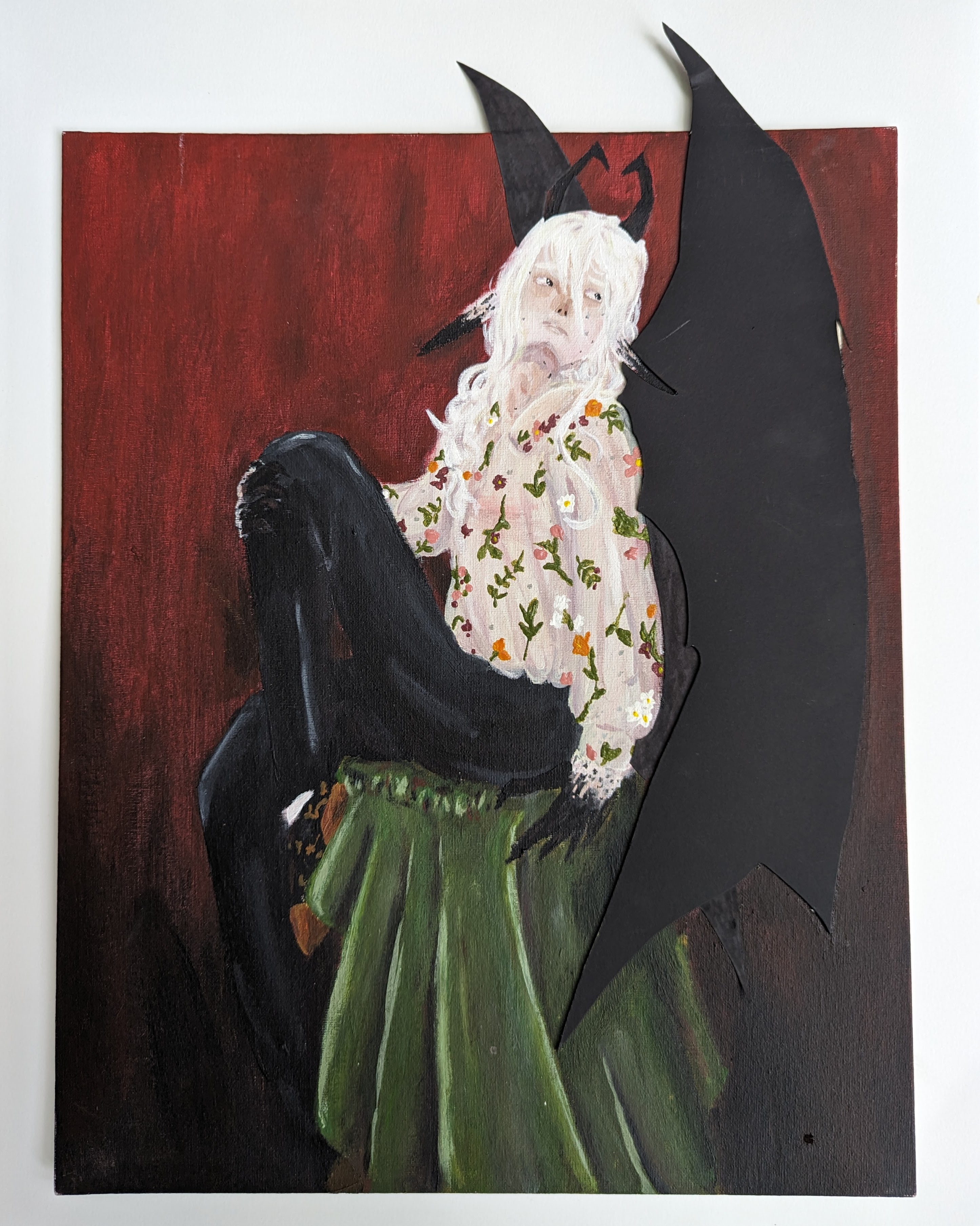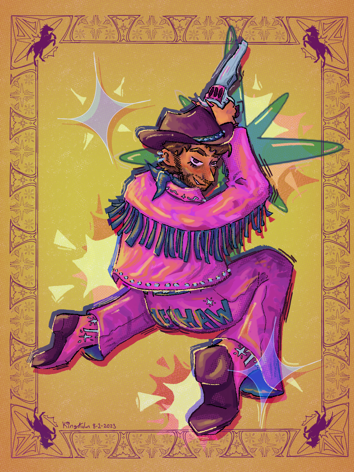 |   Pinup Cowboy, 2023, digital |   Portrait of Zach, 2023, acrylic on canvas |